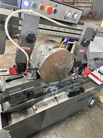 Ленточнопильный станок HBS-1018L представляет собой традиционную модель американского типа, применяемого для серийного производства. Тяжелая литая консоль и большие механические тиски позволяют выполнять пиление металлических заготовок большого диаметра. Пиление под прямым углом допускает максимальный диаметр заготовки в 254 мм. Под углом в 45° станок способен осуществлять распил заготовок диаметром 150 мм. Особенность конструкции станка HBS-1018L заключается в возможностях осуществлять распил прямоугольных заготовок. Допускаемое сечение обрабатываемой заготовки составляет 127х457 мм.