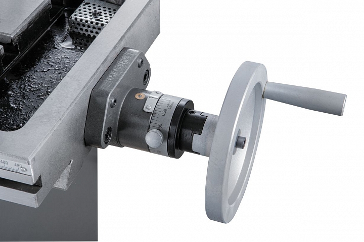 Для расширения задач по обработки заготовок, фрезерная головка станка имеет возможность поворота влево/право на 900, облегчая технологические манипуляции в процессе обработки. Станок оснащен функцией контроля над глубиной сверления, повышая качество обработки и производительность.