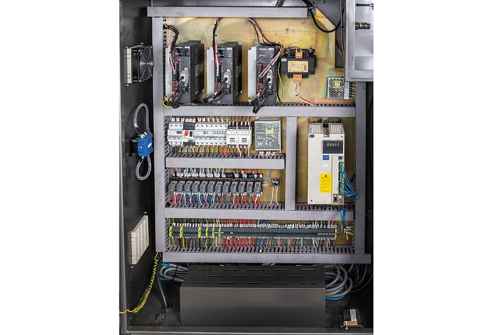 Система перемещений организована c помощью сервоприводов и ШВП по каждой из осей X, Y, Z, что повышает скорость и точность обработки. Серводвигатели позволяют осуществлять плавную регулировку скорости с помощью преобразователя частоты, с оптимальным крутящим моментом и почти постоянной скоростью при больших нагрузках.