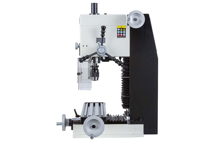 Подключение станка к электросети с напряжением 230В. Применяется для выполнения широкого спектра мелких сверлильных и фрезерных работ. Наличие микроподачи пиноли шпинделя с цифровой индикацией позволяет добиться точного контроля вертикальной подачи.