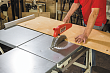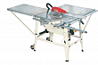 Параллельный упор перемещается вдоль направляющего профиля и имеет эксцентриковый зажим, обеспечивающий быструю и надежную фиксацию. Есть у JTS-315SP и подвижный стол, перемещающийся на роликах-подшипниках вдоль основного. Поверхность каретки невелика, но это отчасти компенсируется длинным упором заготовки, позволяющим добиться точности. Упор можно поворачивать, ориентируясь по транспортирной шкале; если нужна серия коротких изделий, настраивают концевой упор – он «ходит» вдоль основного. В отличие от большинства специализированных строительных пил JTS-315SP имеет регулировку наклона и глубины реза.