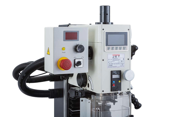 Подключение станка к электросети с напряжением 230В. Применяется для выполнения широкого спектра мелких сверлильных и фрезерных работ. Наличие микроподачи пиноли шпинделя с цифровой индикацией позволяет добиться точного контроля вертикальной подачи.